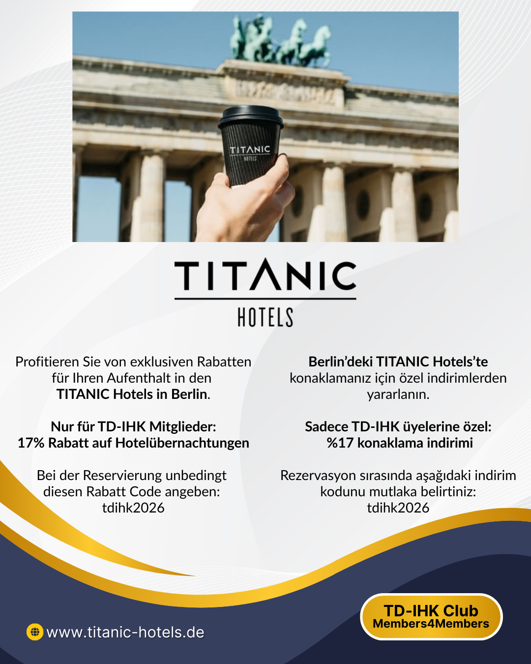 Exklusive Hotelangebote für TD-IHK Mitglieder bei TITANIC Hotels