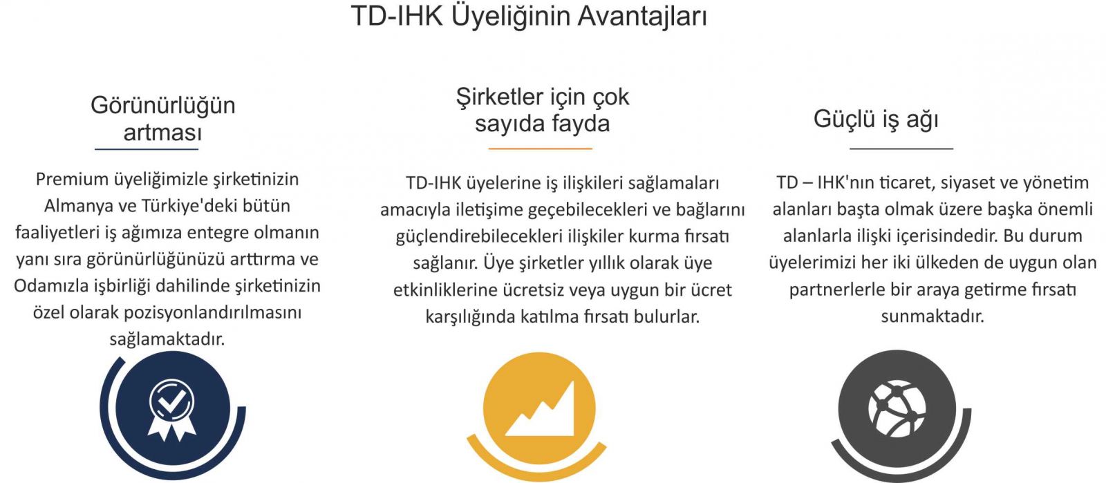 TD-IHK, Almanya ve Türkiye'deki IHK’lar (Sanayi ve Ticaret Odaları) iletişim ağına dahildir. IHK’lar, bulundukları bölgelerde ticaretin temsil organıdır. Dolayısıyla her IHK, danışmanlığını üstlendiği ve siyaseti ekonomik konularda desteklediği bir bölgeye atanmıştır. Bazı IHK’lar ülkeler bazında ağırlık alanları belirlemiştir. Birçok IHK, TD-IHK'nın üyesidir. Bir IHK’ya üye olunca otomatik olarak TD-IHK'ye üye olmuş sayılmazsınız.